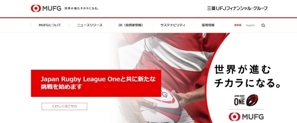 ▲미츠비시UFG파이낸셜그룹(MUFG) 홈페이지