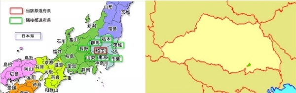 ▲사이타마현(오른쪽)과 현내 시키시(왼쪽)(출처 : benricho, 위키)