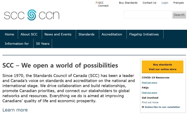 ▲캐나다 표준위원회(SCC) 홈페이지