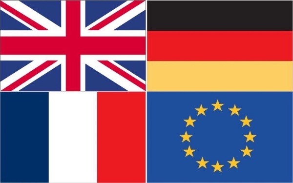 ▲ 유럽 주요국 영국‧독일‧프랑스 및 유럽연합(EU)의 국기 [출처=CIA]