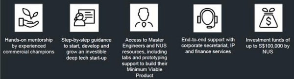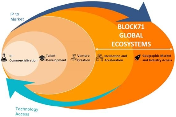 ○ △시장조사, △기술개발, △프로토타이핑, △벤처 창출·IP 라이센싱과 같은 기술 상용화 전략을 교육해 학생들의 스타트업 창업을 돕는다. NUS 학생뿐만 아니라 창업을 희망하는 사람들도 BLOCK71을 통해 무료 지적재산권 사용과 같은 기회를 얻을 수 있다.