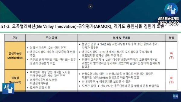 [기획-국회의원 공약 평가] 51. 새날 방송, 경기도 용인시을 김민기 의원···운영성 중(中)외 4개 부문 모두 하(下)