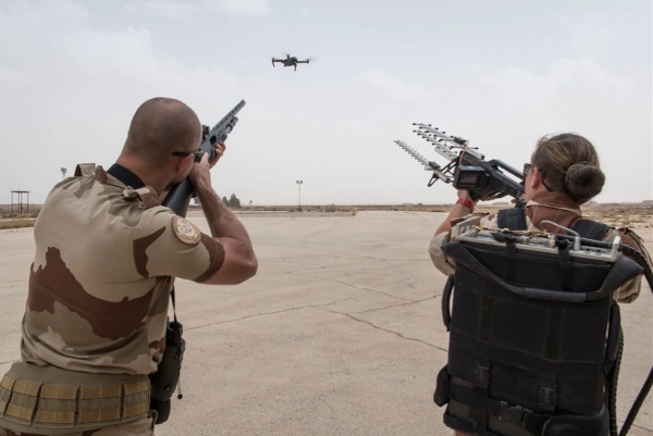 ▲드론 격추를 위한 특수 산탄총과 전자방해 방출기(출처 : 프랑스 국방부)