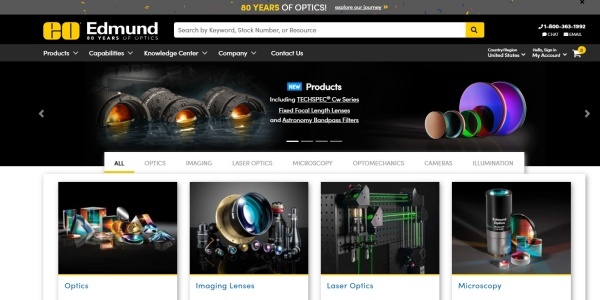 ▲에드몬드 옵틱스(Edmund Optics) 홈페이지