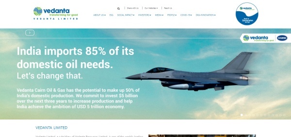 ▲베단타(Vedanta Ltd) 홈페이지