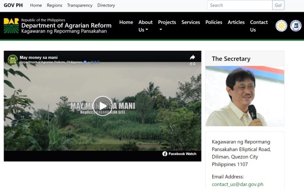 ▲ 필리핀 농업개혁부(Department of Agrarian Reform, DAR) [출처=홈페이지]