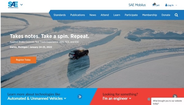 ▲ 국제자동차기술자협회(SAE International) 홈페이지