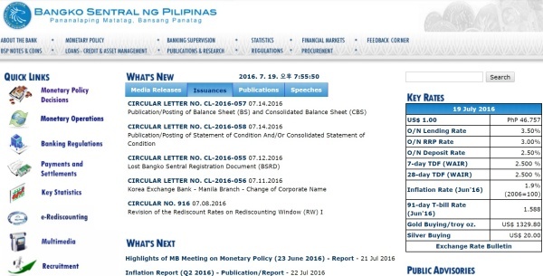 ▲ Philippines_BSP(Bangko Sentral ng Pilipinas)_Homepage