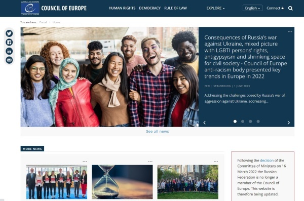 ▲ 인권 기구 유럽 평의회(Council of Europe) 홈페이지