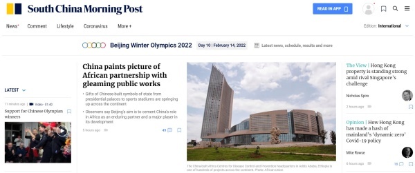 ▲ 사우스차이나모닝포스트(South China Morning Post, SCMP) 홈페이지
