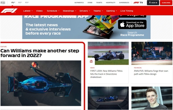 ▲ Formula 1 홈페이지