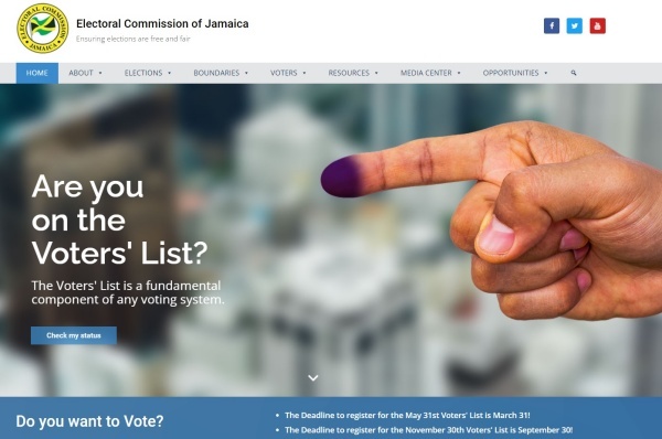▲ 자메이카 선거관리 위원회(Electoral Commission of Jamaica, ECJ) 홈페이지