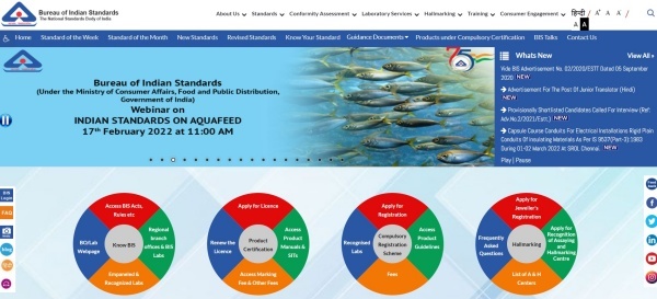 ▲ 인도 표준국(Bureau of Indian Standards, BIS) 홈페이지