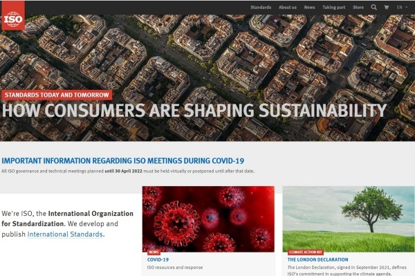 ▲ 국제표준화기구(International Organization for Standardization, ISO) 홈페이지
