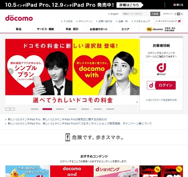 ▲NTT도코모(NTTドコモ) 홈페이지