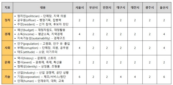 특히 최고 수준의 대학이 몰려 있는 서울은 인재육성 측면, 조선과 자동차라는 국가핵심산업이 위치한 울산은 산업 측면에서 우호적인 평가를 받았다.