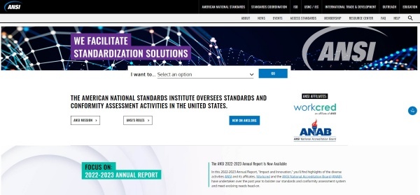 ▲ 미국 표준협회(American National Standards Institute, ANSI) 홈페이지
