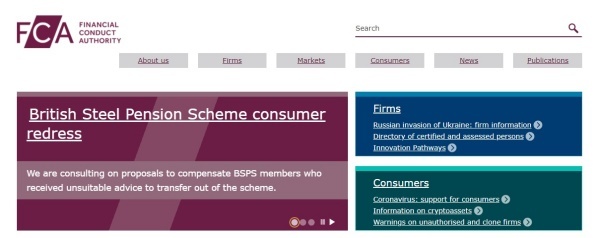 ▲금융감독청(FCA) 홈페이지