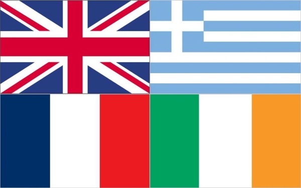 ▲ 유럽 주요국 영국‧그리스‧프랑스‧아일랜드의 국기 [출처=CIA]