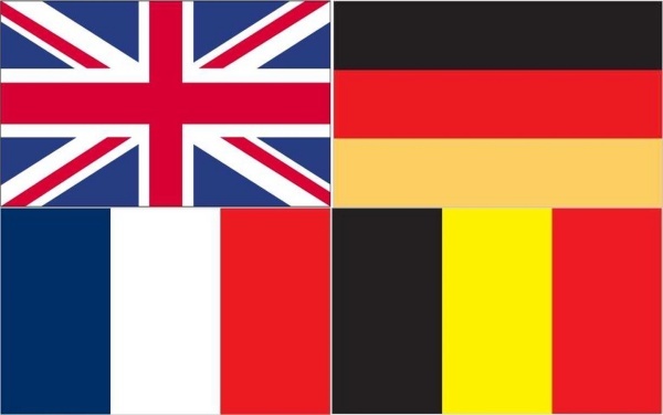 ▲ 유럽 주요국 영국‧독일‧프랑스‧벨기에의 국기 [출처=CIA]