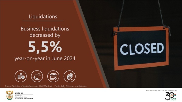 ▲ 남아프리카공화국 통계청(Stats SA)에 따르면 2024년 상반기 청산 기업 수는 759개로 2023년 상반기 802개와 비교해 5.4% 줄었다. [출처=Stats SA 엑스(X) 계정]