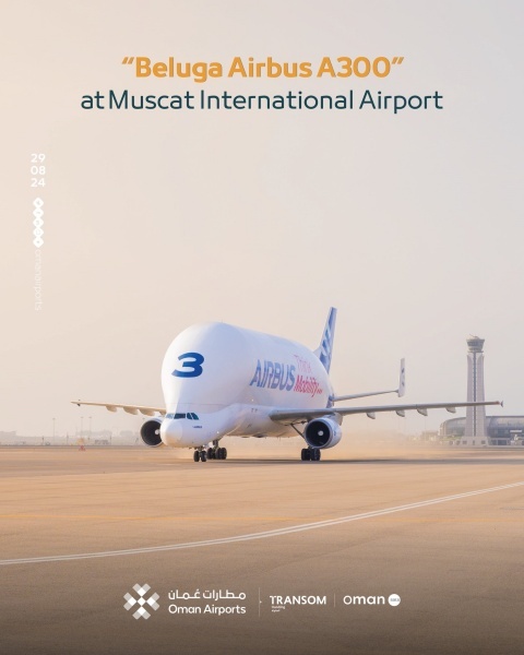 ▲ 오만 무스카트 국제공항(Muscat International Airport)은 2024년 8월30일 세계에서 가장 큰 화물기인 벨루가 에어버스 A300(Beluga Airbus A300)을 도입했다. [출처=오만 공항청(Oman Airports) 엑스(X) 계정]