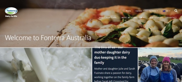 ▲폰테라 오스트레일리아(Fonterra Australia) 홈페이지