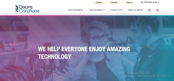 ▲딕슨스 카폰(Dixons Carphone) 홈페이지