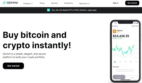 ▲ 암호화폐 거래소 제미니(Gemini) 홈페이지