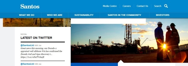 산토스는 도라도-2 탐사평가 유정의 운영업체이며 지분의 80%를 소유하고 있다. 참고로 산토스는 1954년 설립됐으며 본사는 사우스오스트레일리아주 주도인 애들레이드에 위치한다.