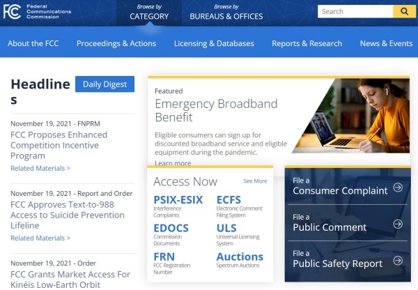 ▲ 연방통신위원회(Federal Communications Commission, FCC) 홈페이지
