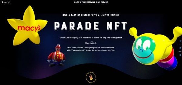 ▲ 메이시(Macy) 백화점 추수감사절 퍼레이드 NFT 출시 홍보 (출처 : 홈페이지)