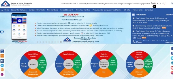 ▲ 인도 표준국(Bureau of Indian Standard, BIS) 홈페이지