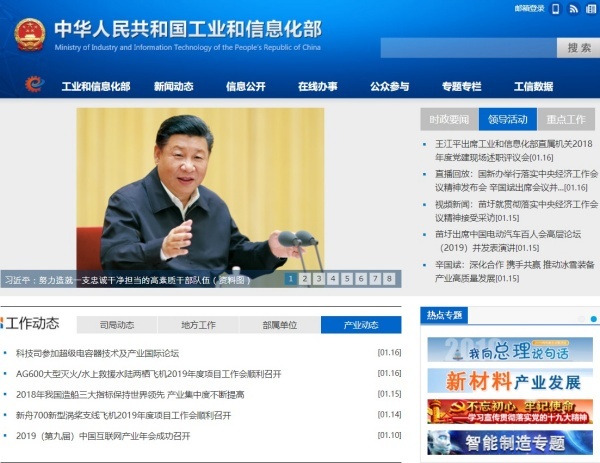 ▲ 공업정보화부(工业和信息化部) 홈페이지